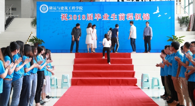 栀子花开,满园芬芳,又到一年毕业季。6月22日,pc28预测在线预测神测网2018届毕业生齐聚工科楼D座大厅,与老师们一起走红毯、合影留念,储建学院院长李玉星、党委书记高平发等学院党政领导及各系教师参加此次活动。
