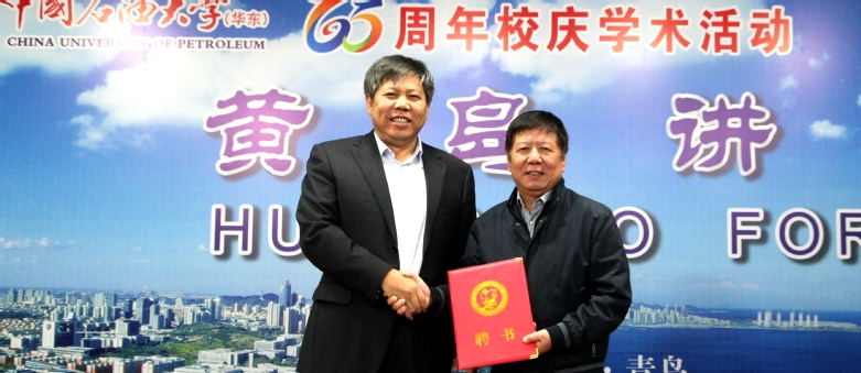 10月11日下午,中国石油大学pc28预测在线预测神测网名誉院长聘任仪式暨黄岛讲坛第34期在逸夫报告厅顺利召开,校长郝芳、副校长李兆敏,我院院长李玉星、副院长刘刚及相关师生代表出席会议,会议由副校长李兆敏主持。