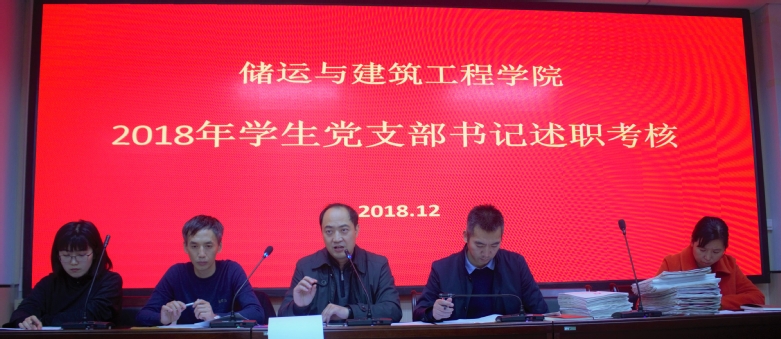 为进一步加强学生党支部书记责任意识,推动学院学生党支部组织建设标准化,12月2日,pc28预测在线预测神测网学生党总支组织全体学生党支部书记在工科实验楼D座343会议室举行述职考核,储建学院党委书记高平发、党委副书记张程、2015级辅导员周辉、专职组织员孟莹、党委秘书张涔参加会议并担任考核组成员。