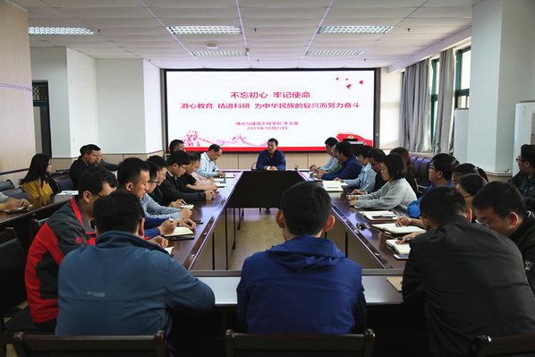 根据学校“不忘初心、牢记使命”主题教育安排,10月22日,储建学院院长李玉星以《不忘初心、牢记使命,潜心教育,精进科研, 为中华民族的复兴而努力奋斗》为题给学院教师党员同志讲党课。