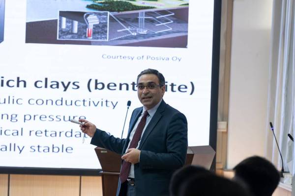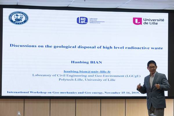 会议由土木工程系杨文东副教授主持。会上,英国曼彻斯特大学Majid Sedighi副教授对地下压实粘土缓冲区中的THCM耦合过程进行了分析。法国里尔大学卞汉兵副教授对高放废物地下埋存的设计、监测与评估进行了探讨。韩国建设技术研究院(KICT)研究员庄丽,以花岗岩的循环水力压裂为切入点,论述了减轻诱发地震活动性概念的实验室规模证明。英国PSE离散元软件公司顾问王利戈博士通过颗粒破碎和岩石切割机理的DEM建模进行了基于相场法的裂缝扩展模拟。英国曼彻斯特大学Mojgan Hadi Mosleh助理教授提出解决地下能源活动对环境影响的创新方案。我院刘建林教授基于分子动力学分析超临界二氧化碳在含水盲端孔隙中的驱油问题。石油工程学院杨永飞副教授从数字岩石物理学角度,对地球能源发展的先进测试和分析技术进行论述。山东大学段抗教授对水力压裂的离散元数值计算进行了介绍。石油工程学院黄朝琴副教授报告了深部油藏热-水-力耦合多尺度数值模拟方法。山东科技大学王春光副教授论述了在多物理场条件下的气煤系统的相互作用。