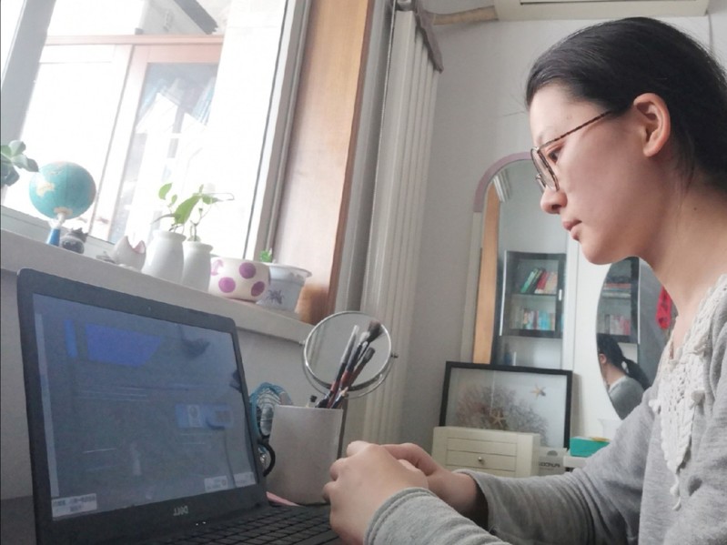 辅导员冯丝琦在家乡河北省石家庄市收看思政课