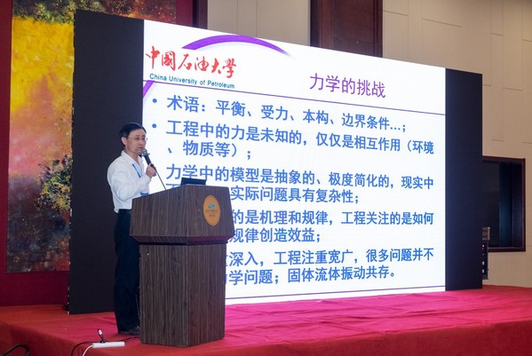 10日上午隆重举行学术报告会。在报告和讨论环节,来自全国多个高校的老师和同学进行了充分的交流与沟通。中国石油大学刘建林教授、上海大学陈立群教授、燕山大学李子丰教授、上海大学吕浡教授、中国科学院兰州化学与物理研究所郭志光研究员、中国科学院力学研究所刘传奇研究员、天津大学袁林教授等七名学者做了有关石油工程力学、能量采集器、油气开采力学、锂电池力学分析、仿生新材料设计、地质力学、海洋管道力学等方面的专题报告。在本次会议上,各个领域的专家汇聚一堂,积极提问,相互讨论,学者们相互交流,相互融合,共同切磋在石油工程、机械工程、仿生工程、新材料和新能源等方面的拓展应用。