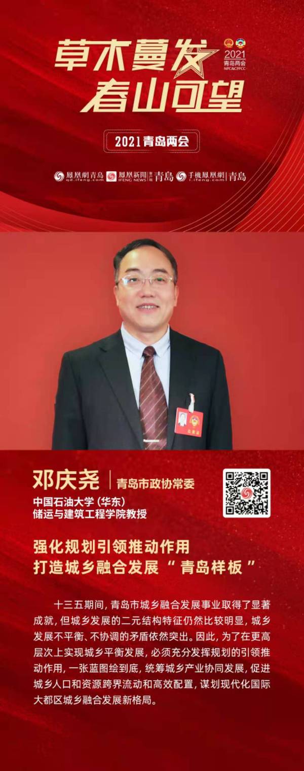 近日,青岛市、西海岸新区两会召开,青岛市政协常委、pc28预测在线预测神测网邓庆尧教授在政协第十三届青岛市委员会第五次会议上做了题为《主动对接国家战略,高起点规划引领,着力构建青岛现代化都市圈》的大会发言,受到省委常委、青岛市委书记王清宪的肯定和重视,这一提案还得到青岛市政协主席杨军的亲自指导和督办。