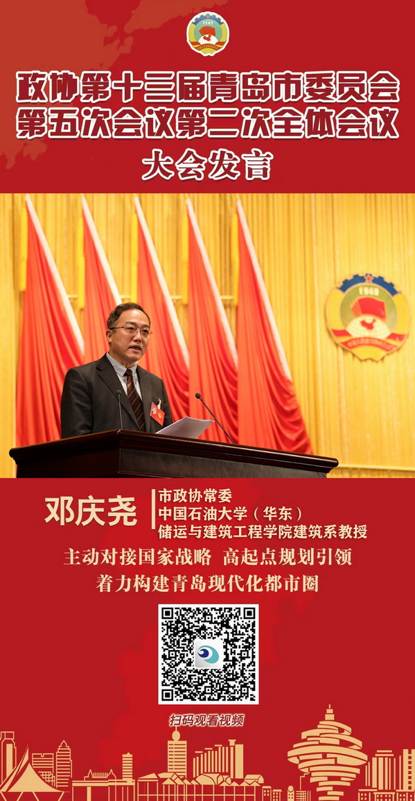 近日,青岛市、西海岸新区两会召开,青岛市政协常委、pc28预测在线预测神测网邓庆尧教授在政协第十三届青岛市委员会第五次会议上做了题为《主动对接国家战略,高起点规划引领,着力构建青岛现代化都市圈》的大会发言,受到省委常委、青岛市委书记王清宪的肯定和重视,这一提案还得到青岛市政协主席杨军的亲自指导和督办。