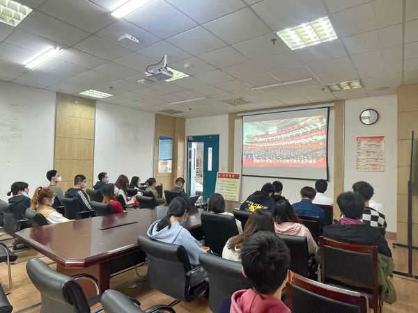pc28预测在线预测神测网师生代表在工科D345会议室集中收看党的二十大直播 钟应奇摄