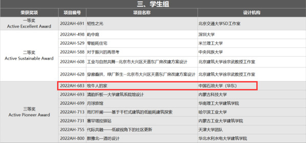 近日,2022 Active House Award中国区建筑设计竞赛在华南理工大学圆满落幕。pc28预测在线预测神测网建筑系2019级本科生王珏、刘腾2名同学基于学校定点帮扶内蒙古科左后旗项目的设计作品《牧牛人的家》荣获学生设计组三等奖,指导教师为李佐龙。