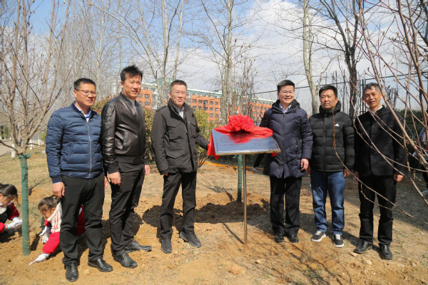 座谈结束后,双方一同来到工科楼D座前参加植树活动。在植树现场,大家热情洋溢,拿起铁锹挖坑植苗,铲土浇水,配合协作,认真完成着每一道工序,在大家的共同努力下,象征着友谊长存的12棵玉兰树在这里“安家落户”,为美丽的校园增添了一点新绿。随后,双方共同为这片“致远林”进行了揭牌。