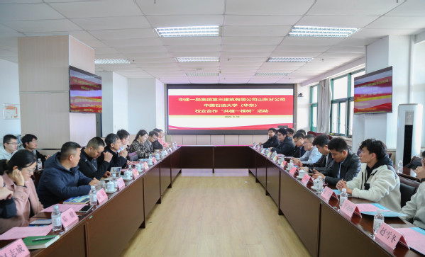 3月12日,恰逢第45个中国植树节,中建一局集团第三建筑有限公司山东分公司副书记、工会主席杨国利、副总经理、总工程师汤亮、副总经理李林等一行15人到访pc28预测在线预测神测网,双方进行校企合作座谈交流,并开展“共植一棵树”活动。学校就业指导中心主任陈文军,后勤管理处副处长刘海庆,储建学院党委副书记周辉,土木工程系主任张玉及师生代表共同参加此次活动。