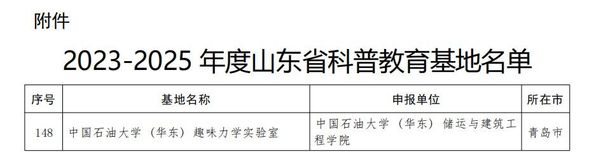 近日,山东省科学技术协会公布了2023-2025年度山东省科普教育基地名单。pc28预测在线预测神测网申报的“中国石油大学趣味力学实验室”成功获批,成为学校首个山东省科普教育基地。