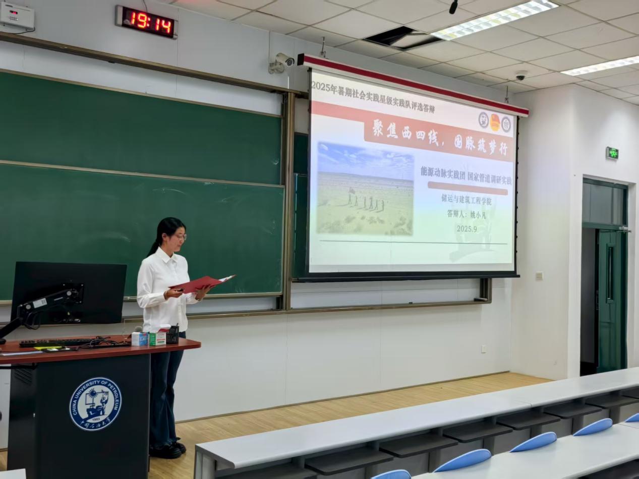 会上,多个实践队通过PPT展示、现场汇报等形式,分享了各实践队在暑期实践中的经历与成果。“能源动脉实践团”聚焦国家能源安全,深入西气东输四线工程,开展长达4000公里的实地调研,形成万字调研报告,并获国家管网公司报道;“沂河兴澜实践队”围绕乡村振兴主题,走进临沂小商品城与乡村一线,提出“商贸+文化+生态”融合发展的新路径;“石帆逐浪力学实践队”结合专业特色,开展充气式桨板力学性能研究,走进多家企业推动产学研结合,累计发表稿件74篇,阅读量超43万;“犁城逐梦实践队”虽仅一人组成,但仍深入基层开展社区服务与青年市集活动,获评“优秀实习实践”荣誉。各实践队汇报内容充实、形式多样,既有扎实的数据支撑,也有动情的实践感悟,充分展现了石大学子“惟真惟实”的学风和“能源报国、乡村振兴、科技自强”的使命担当。