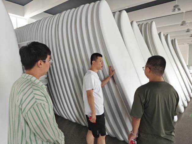 石帆逐浪力学实践队前往威海山东创意集团有限公司和威海水知乐户外用品股份有限公司开展暑期社会实践,通过技术交流、生产观摩和问题研讨,实践队员们深入了解了充气式桨板的生产流程,系统了解了户外充气装备领域的技术现状与发展瓶颈,将课堂所学力学知识应用到实际生产中。
