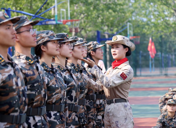 我院参加“九三”阅兵的2024级研究生由子艳返校后到军训场指导队列训练 王大勇摄