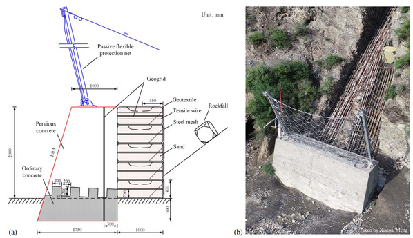 (1)本文提出了一种由透水混凝土墙、砂缓冲垫层及被动防护网组成的新型防护结构,可在缓解落石冲击的同时排出地表径流。进而开展室内试验、现场原位试验结合理论分析验证了该结构的可行性。