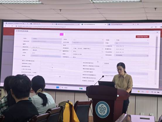 随后,张钦开展了党建业务专项培训。培训内容围绕“党建工作基础业务”“党员发展系统维护”和“主题党日活动规范化建设”等方面展开,结合实例,对“数字石大”党员管理系统和“灯塔-党建在线”系统的使用方法进行了演示,重点讲解了新生党员录入、预备党员转正、毕业生组织关系转接等关键环节,帮助各支部熟悉操作流程,规范工作记录。培训还就“党员星期四”“政治生日”“党员活动角”等特色活动进行了经验分享,鼓励各支部创新活动形式、打造党建品牌。