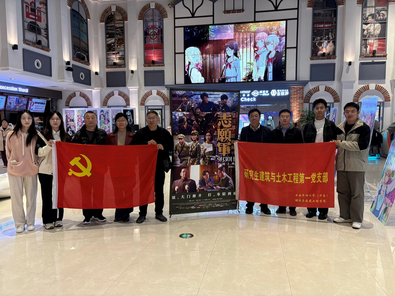 为深入学习贯彻新时代中国特色社会主义思想,创新党性教育形式,激发广大党员师生的爱国热情与奋斗精神,2025年10月25日,中国石油大学基建处党支部与研究生建筑与土木工程第一党支部联合组织了以“光影铸魂强党性,砥砺奋进践初心”为主题的共建观影活动,共同观看了爱国主义题材影片《志愿军:浴血和平》。